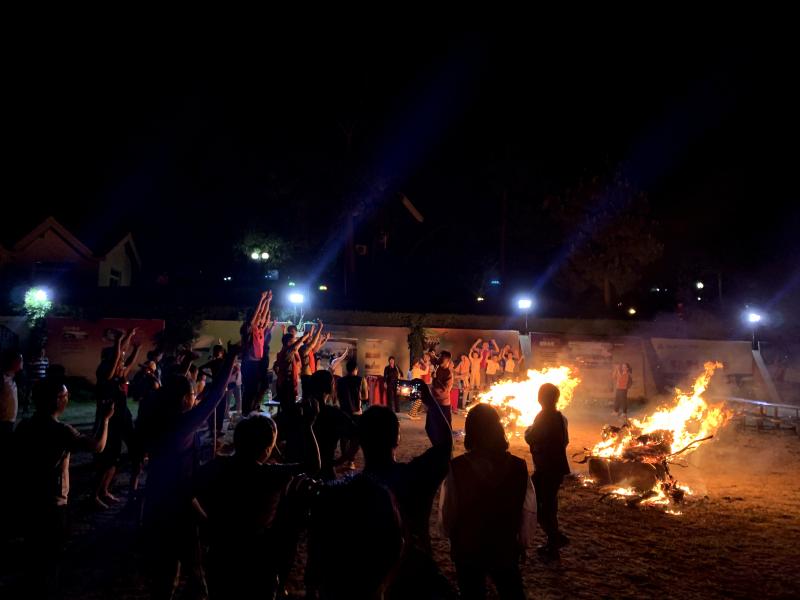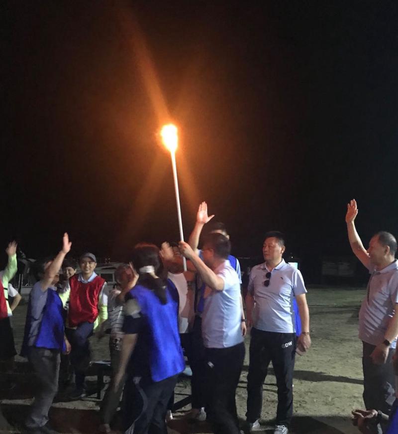夜幕四合,工會(huì)主席王志凌點(diǎn)燃了火把,拉開了篝火晚會(huì)的序幕。在輕快歡快的音樂節(jié)拍下,紅藍(lán)兩隊(duì)隊(duì)員們手拉著手、肩并肩圍著熊熊篝火歡呼著、舞動(dòng)著、跳躍著、歌唱著,隊(duì)員們完全沉浸在歡樂的海洋里……當(dāng)《朋友》之歌響起時(shí),在場所有人一起放聲歌唱,將本次活動(dòng)的氣氛推向高潮!