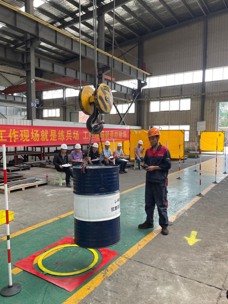 單梁行車(chē)組競(jìng)賽項(xiàng)目,更突出了遵守安全操作規(guī)程的重要性。競(jìng)賽內(nèi)容涵蓋了一些日常工作中非常重要,又很容易忽視的有關(guān)行車(chē)操作的安全問(wèn)題。行車(chē)實(shí)操比賽要求每個(gè)選手按規(guī)定完成每個(gè)動(dòng)作,比如:檢查限位,試吊,穿越障礙物,跨越障礙物,吊鉤及遙控器歸位等。這不僅是一次技能操作大比拼,也是一次全員安全教育。