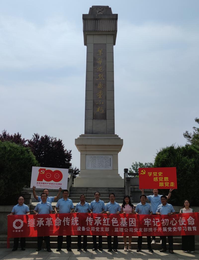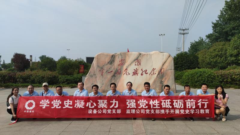 為了慶祝中國(guó)共產(chǎn)黨成立100周年,落實(shí)黨史學(xué)習(xí)教育工作計(jì)劃, 6月11日,我院設(shè)備公司和監(jiān)理公司黨支部在中共安徽第一面黨旗紀(jì)念園和中國(guó)建材(合肥)技術(shù)中心工程項(xiàng)目現(xiàn)場(chǎng)開(kāi)展主題為“學(xué)黨史、感黨恩、跟黨走”黨史學(xué)習(xí)教育實(shí)踐活動(dòng),支部黨員、入黨積極分子和部分中層以上干部參加了此次活動(dòng)。