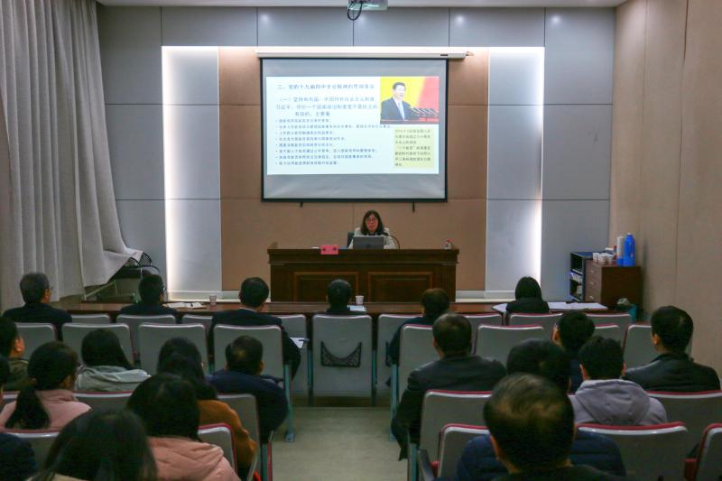 魏群教授圍繞黨的十九屆四中全會召開的時代背景、全會《決定》的體系內(nèi)容、全會精神的貫徹落實三個方面,深入闡釋了黨的十九屆四中全會的重大意義,闡述了中國特色社會主義制度和國家治理體系的顯著優(yōu)勢,對全會《決定》提出的總體要求、總體目標和重點任務(wù)進行了系統(tǒng)解讀,對如何貫徹落實黨的十九屆四中全會精神進行了具體指導。宣講報告聚焦重點和關(guān)鍵,內(nèi)涵豐富、系統(tǒng)全面,深入淺出、鮮活生動、論述精辟,參加宣講報告會的黨員同志深受啟迪,倍受教育。